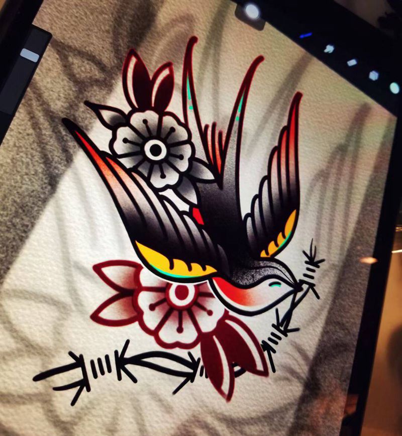 当前位置: 首页 >广东省广州市纹身店-刺青云纹身图案>Oldschool风格燕儿别虎纹身图片_手臂手部Old School纹身图案