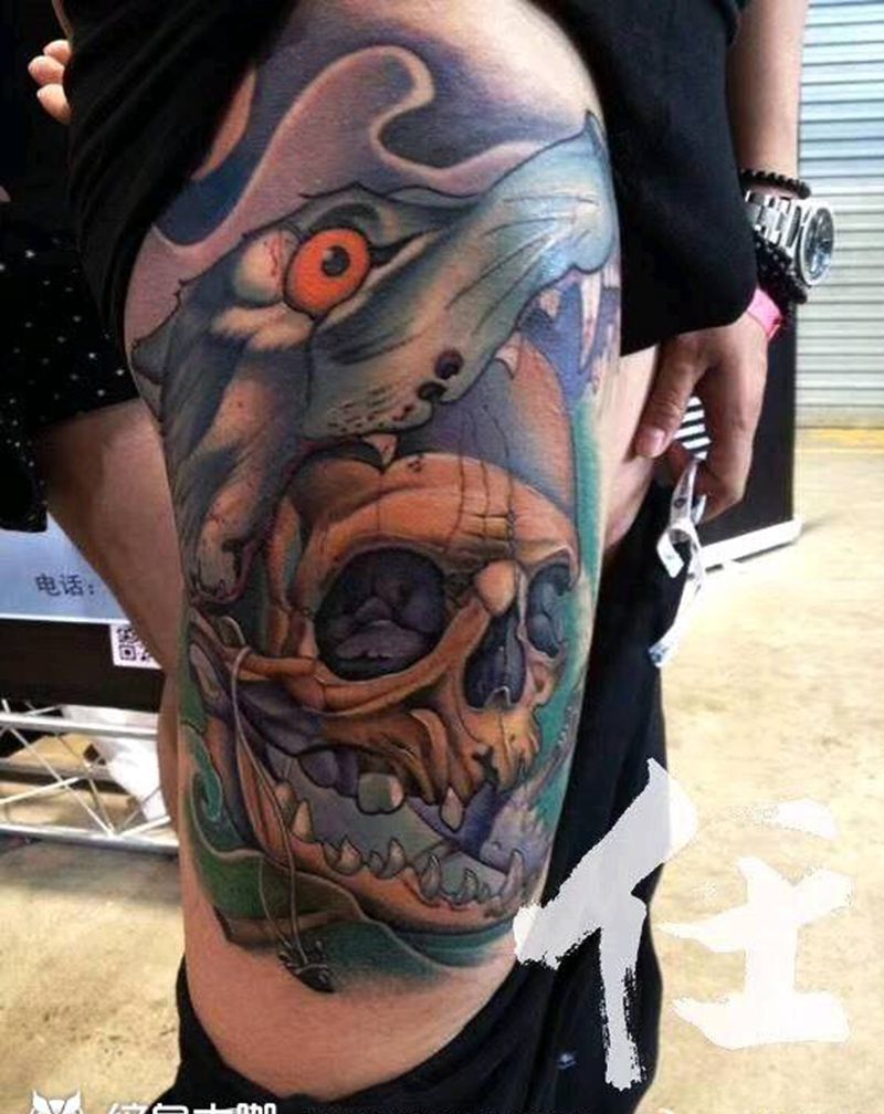 • T网红王老大花腿龙纹身图片_腿部新传统纹身图案
