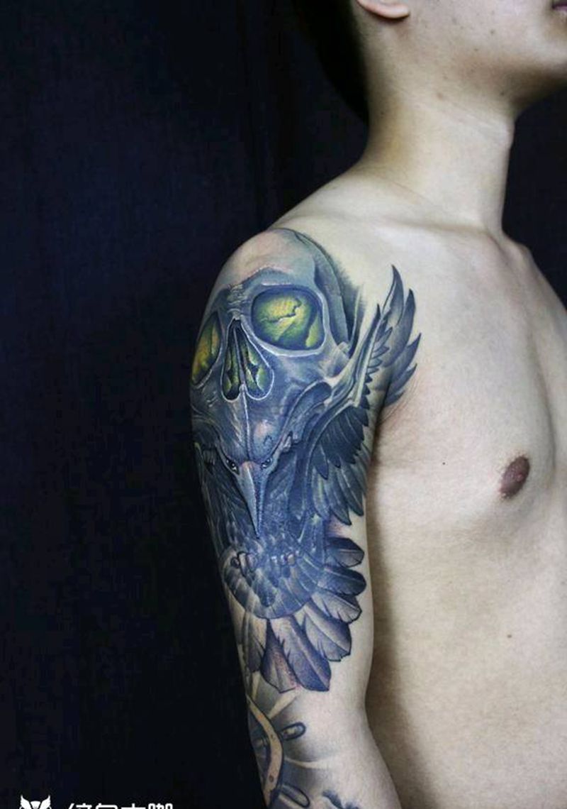 遮盖纹身图片_肩部手臂欧美写实纹身图案