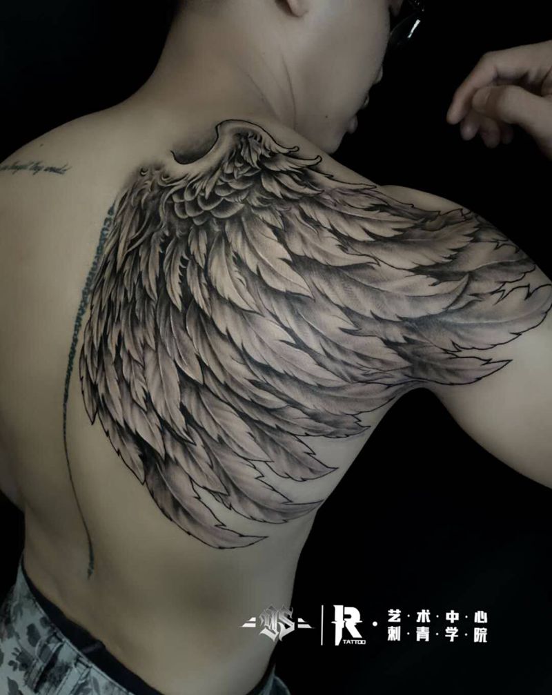 天使翅膀 男神都最爱纹身图片_肩部欧美写实纹身图案