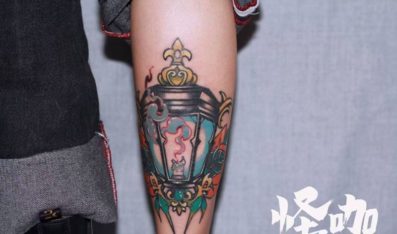 • T包小腿吹火男+阿多福纹身图片_腿部老传统新传统吹火男阿
