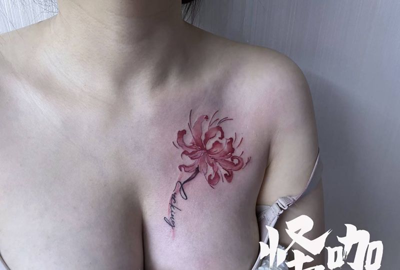 • 女性大花胸纹身_43张霸气漂亮的女性大花胸纹身图案作品