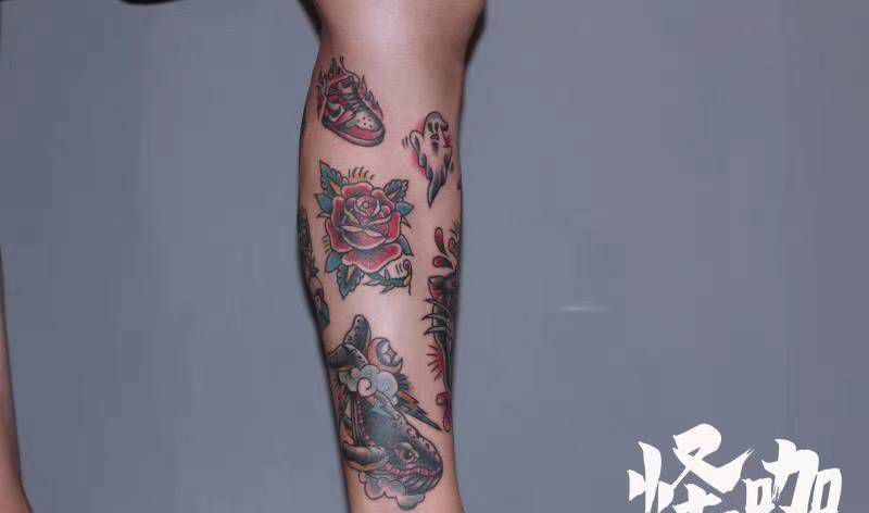 当前位置: 首页 >广东省广州市纹身店-广州怪咖纹身刺青纹身图案>作品纹身图片_腿部Old School纹身图案