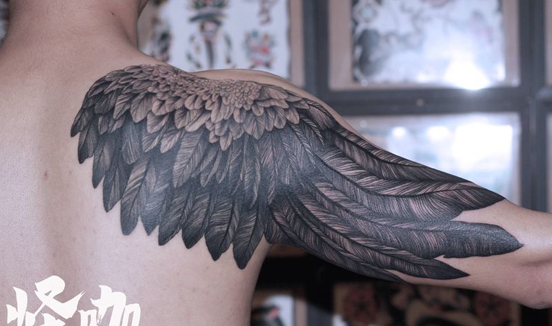 当前位置: 首页 >广东省广州市纹身店-广州怪咖纹身刺青纹身图案>翅膀纹身图片_背部纹身图案