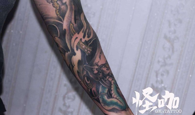 当前位置: 首页 >广东省广州市纹身店-广州怪咖纹身刺青纹身图案>作品纹身图片_手臂新传统纹身图案