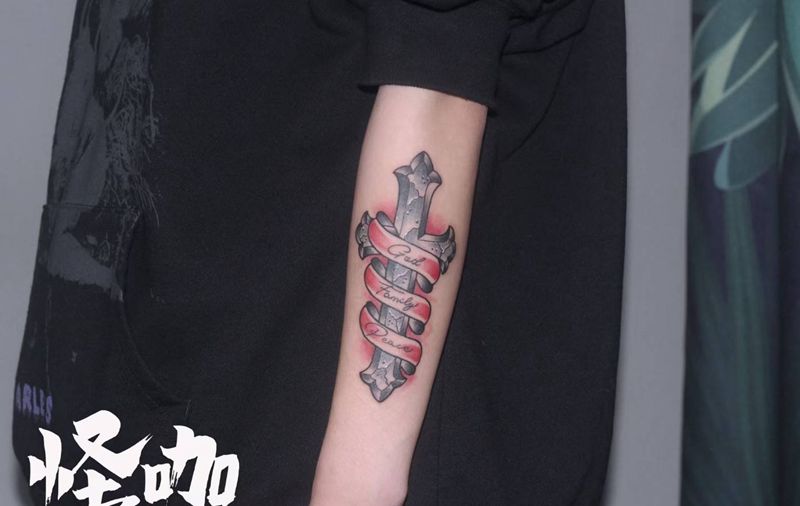 当前位置: 首页 >广东省广州市纹身店-广州怪咖纹身刺青纹身图案>School系列纹身图片_手臂Old SchoolNew School玫瑰十字架纹身图案