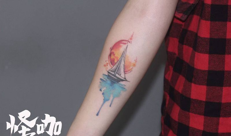 当前位置: 首页 >广东省广州市纹身店-广州怪咖纹身刺青纹身图案>水彩系列纹身图片_胸部手臂水彩船锚帆船海浪纹身图案