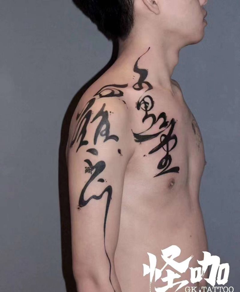 当前位置: 首页 >广东省广州市纹身店-广州怪咖纹身刺青纹身图案>书法纹身图片_腿部手臂花纹身图案