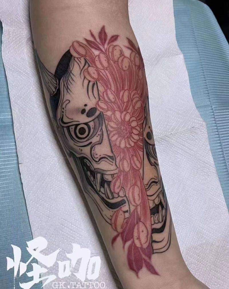 般若菊花纹身图片_手臂新传统老传统纹身图案