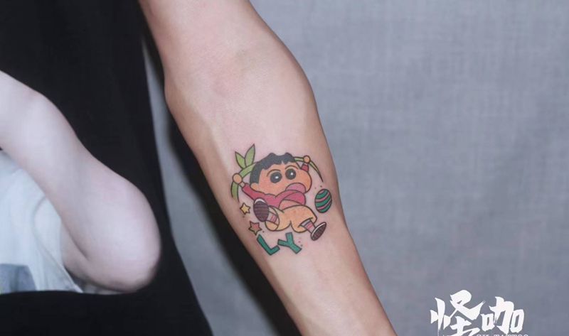 作品纹身图片_手臂腿部Old School雁子蜡笔小新纹身图案