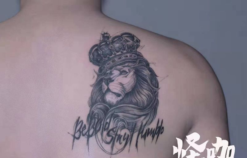 当前位置: 首页 >广东省广州市纹身店-广州怪咖纹身刺青纹身图案>狮子纹身图片_背部欧美写实New School皇冠纹身图案