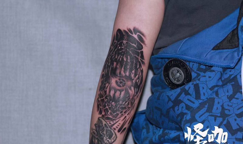 当前位置: 首页 >广东省广州市纹身店-广州怪咖纹身刺青纹身图案>眼睛纹身图片_手臂欧美写实手肘暗黑纹身图案