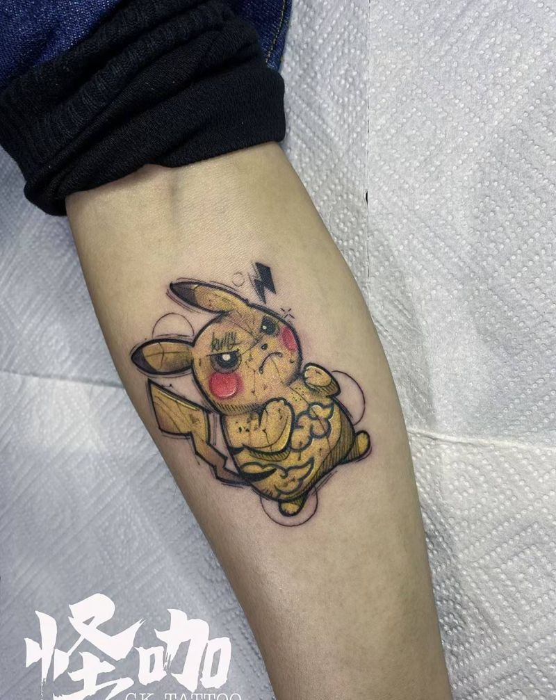 当前位置: 首页 >广东省广州市纹身店-广州怪咖纹身刺青纹身图案>皮卡丘纹身图片_腿部手臂New School卡通纹身图案
