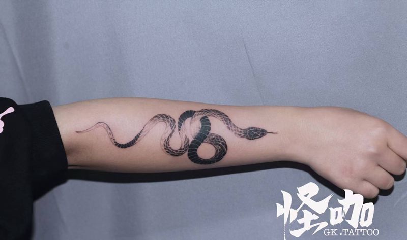 当前位置: 首页 >广东省广州市纹身店-广州怪咖纹身刺青纹身图案>蛇纹身图片_手臂手部水墨几何纹身图案