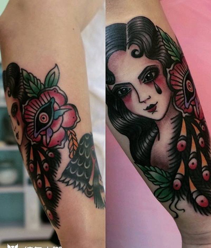 当前位置: 首页 >广东省广州市纹身店-蛹刺青纹身图案>oldschool人物定制纹身图片_手臂欧美肖像人物植物情侣原创成品手稿纹身图案