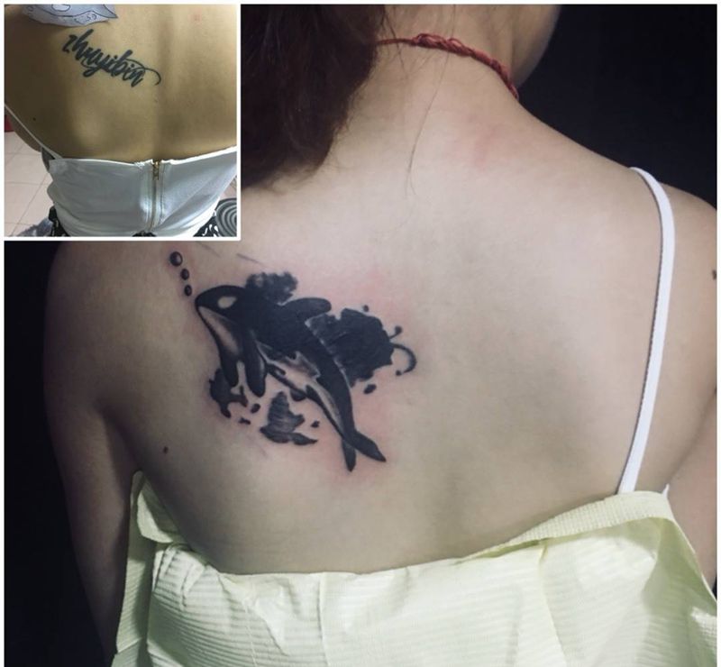 当前位置: 首页 >广东省广州市纹身店-永恒刺艺艺术纹身纹身图案>遮盖男朋友纹身图片_成品背部清新动物纹身图案