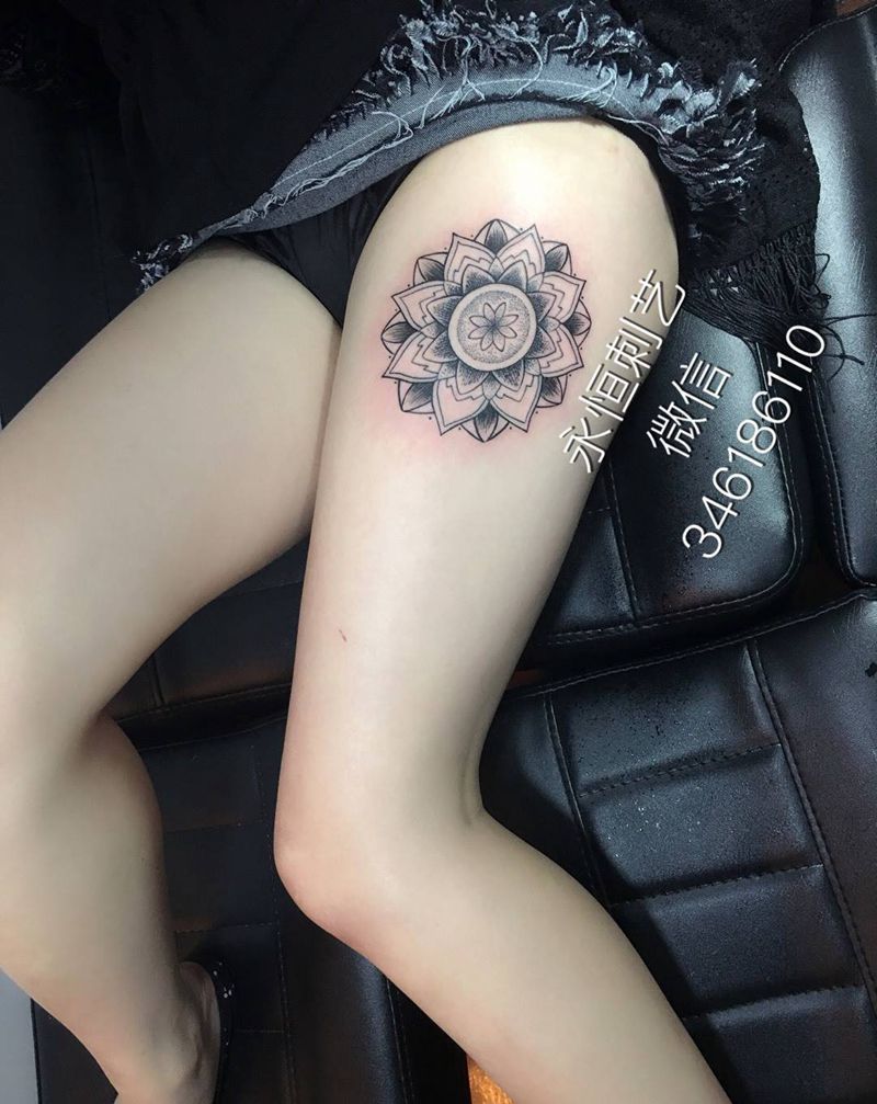 • 时尚性感的腹部莲花纹身图案