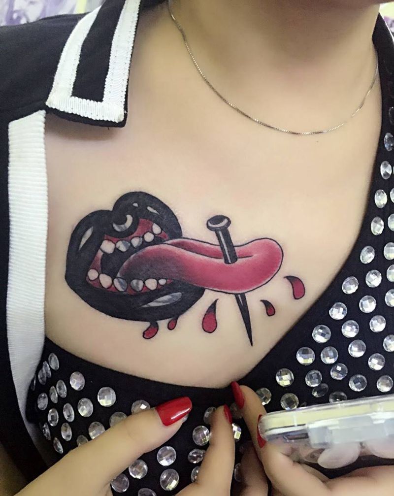 • 女性大花胸纹身_43张霸气漂亮的女性大花胸纹身图案作品