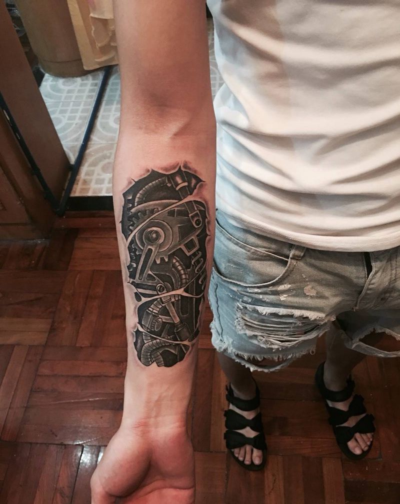 机械齿轮纹身图片_成品手臂写实纹身图案