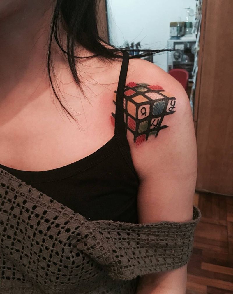 当前位置: 首页 >广东省广州市纹身店-永恒刺艺艺术纹身纹身图案>魔方格纹身图片_成品肩部清新几何纹身图案