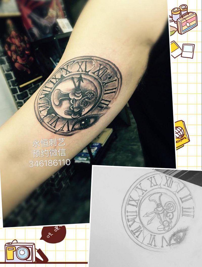 当前位置: 首页 >广东省广州市纹身店-永恒刺艺艺术纹身纹身图案>眼睛钟表纹身图片_成品手臂手稿欧美原创纹身图案
