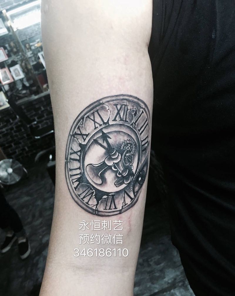 当前位置: 首页 >广东省广州市纹身店-永恒刺艺艺术纹身纹身图案>眼睛钟表纹身图片_成品手臂手稿欧美原创纹身图案