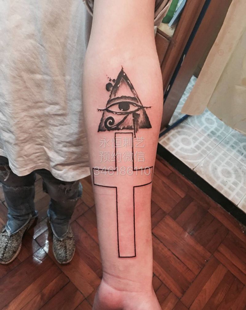 全视之眼纹身图片_成品手臂清新几何纹身图案