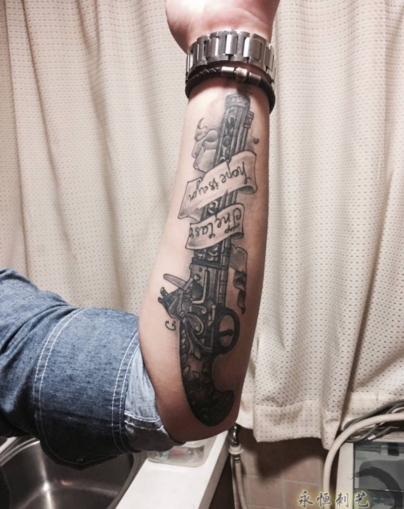 火枪纹身图片_成品手臂手部清新静物纹身图案