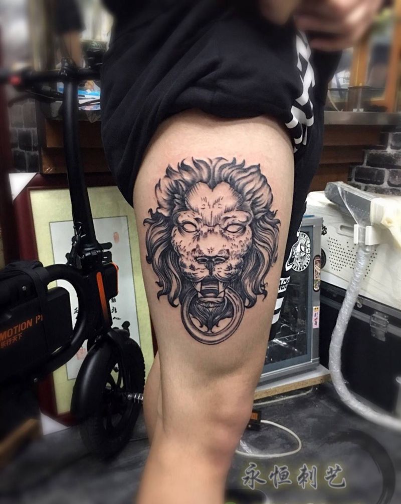 当前位置: 首页 >广东省广州市纹身店-永恒刺艺艺术纹身纹身图案>狮子纹身图片_成品腿部传统动物纹身图案
