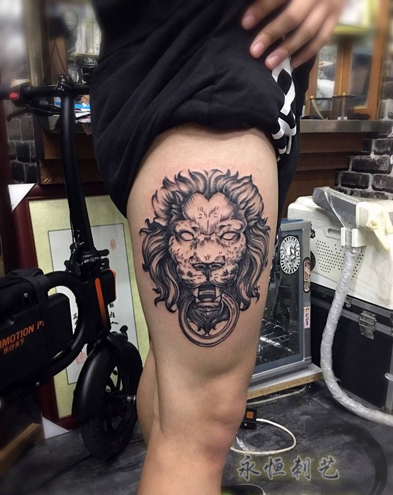 当前位置: 首页 >广东省广州市纹身店-永恒刺艺艺术纹身纹身图案>狮子纹身图片_成品腿部传统动物纹身图案