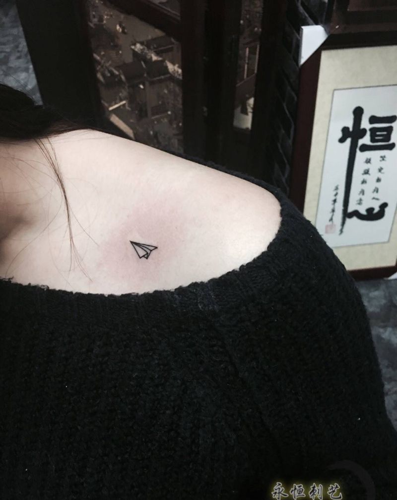 当前位置: 首页 >广东省广州市纹身店-永恒刺艺艺术纹身纹身图案>纸飞机纹身图片_成品肩部清新几何纹身图案