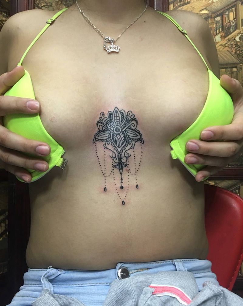 当前位置: 首页 >广东省广州市纹身店-永恒刺艺艺术纹身纹身图案>胸花纹身图片_成品胸部清新几何纹身图案