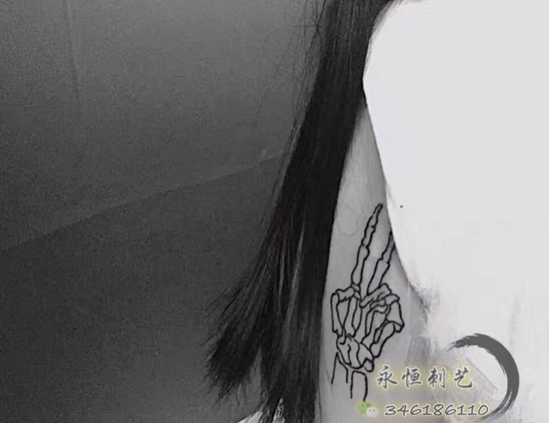 骷髅手纹身图片_成品手臂清新人物纹身图案