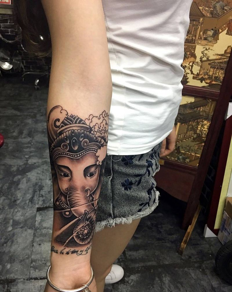 当前位置: 首页 >广东省广州市纹身店-永恒刺艺艺术纹身纹身图案>象神纹身图片_成品手臂清新动物纹身图案