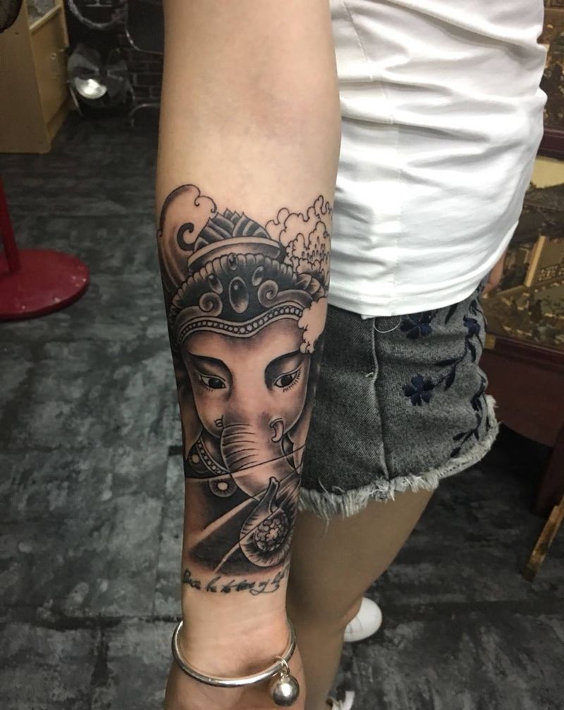 当前位置: 首页 >广东省广州市纹身店-永恒刺艺艺术纹身纹身图案>象神纹身图片_成品手臂清新动物纹身图案
