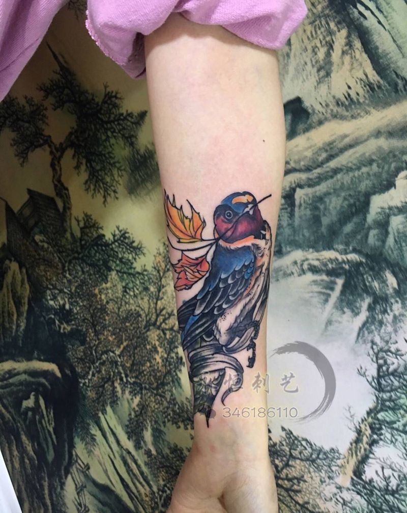 当前位置: 首页 >广东省广州市纹身店-永恒刺艺艺术纹身纹身图案>燕子纹身图片_成品传统动物纹身图案