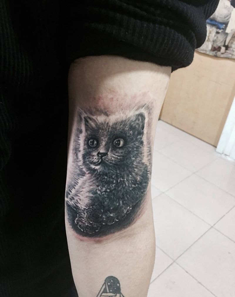 小猫.纹身图片_成品手臂肖像动物纹身图案