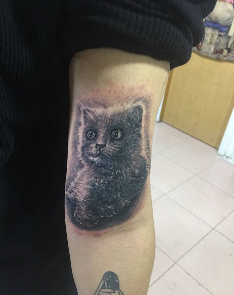 当前位置: 首页 >广东省广州市纹身店-永恒刺艺艺术纹身纹身图案>小猫.纹身图片_成品手臂肖像动物纹身图案