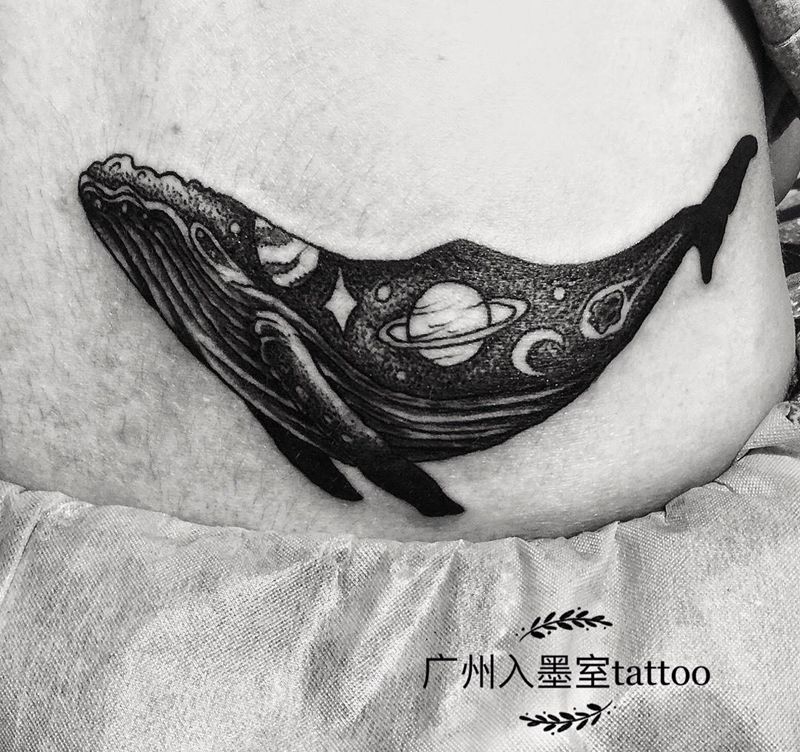 黑灰满背纹身图案
