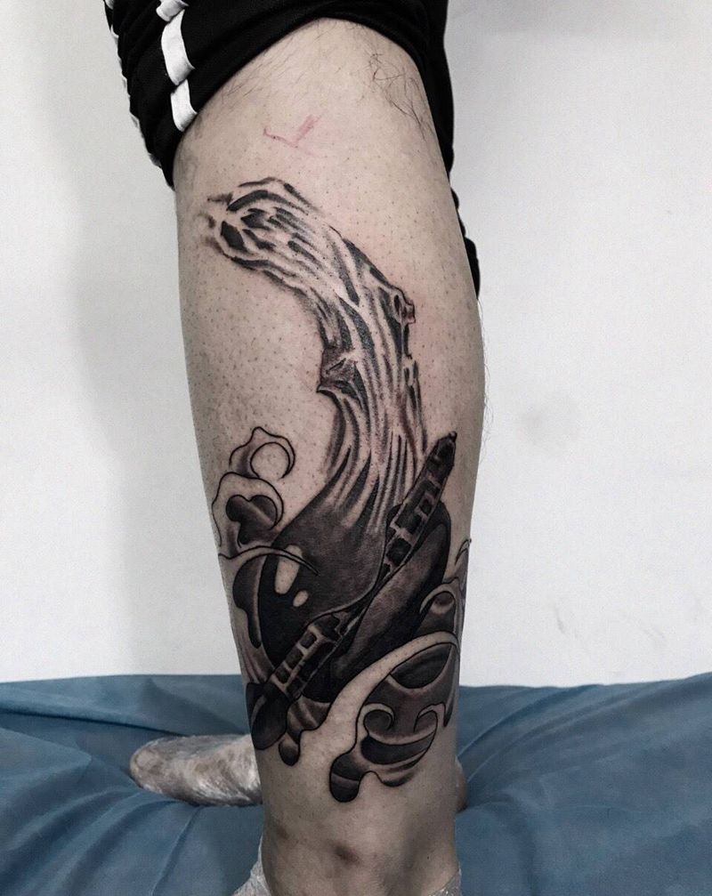 • T网红王老大花腿龙纹身图片_腿部新传统纹身图案