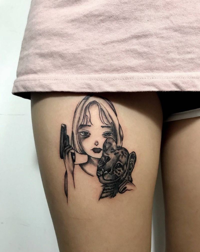 • T网红王老大花腿龙纹身图片_腿部新传统纹身图案
