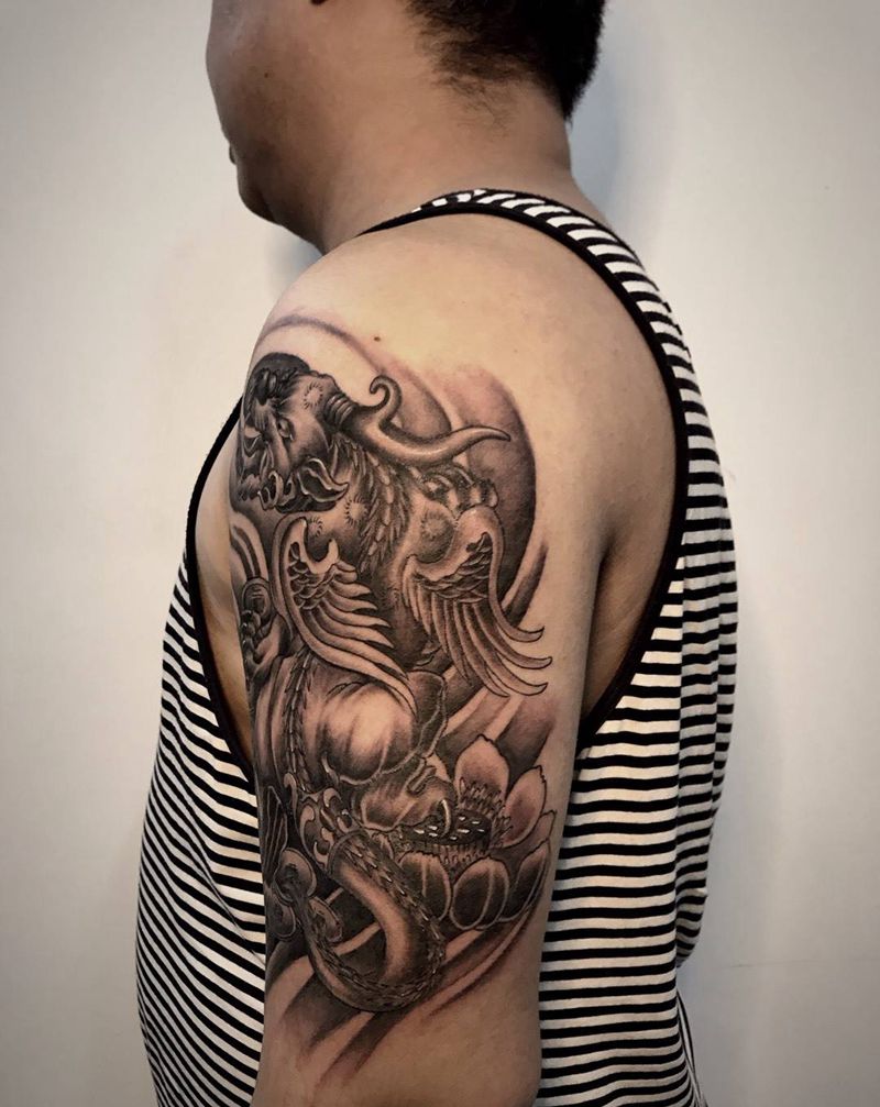• 纹身吧推荐的披肩图腾半胛纹身图案作品展示