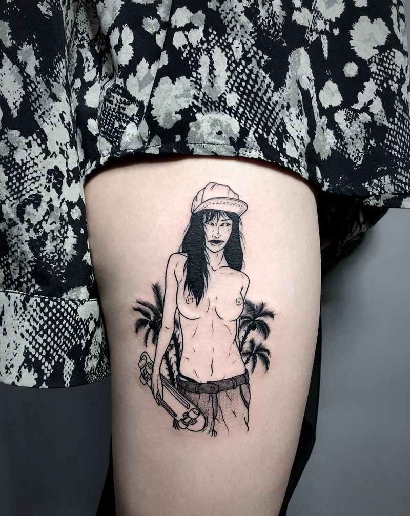 当前位置: 首页 >广东省广州市纹身店-框刺青纹身图案>滑板少女纹身图片_腿部纹身图案