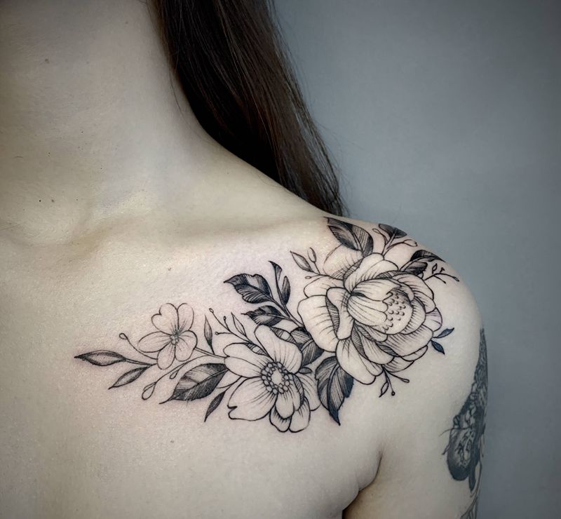 肩膀 素花 肩花纹身图片_肩部胸部纹身图案