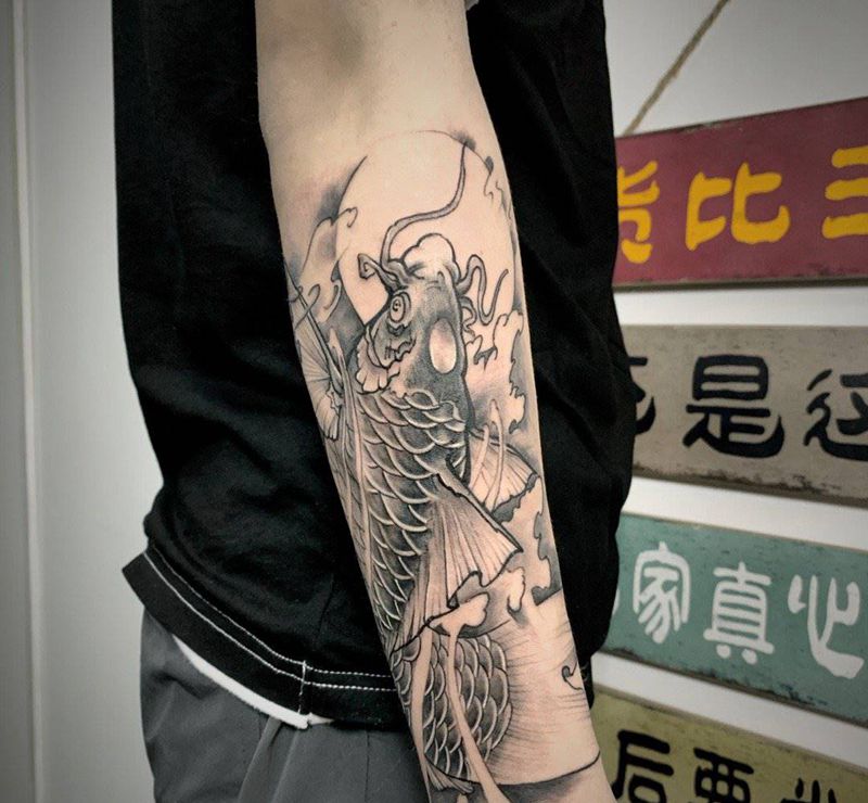 当前位置: 首页 >广东省广州市纹身店-框刺青纹身图案>传统鲤鱼纹身图片_手臂新传统纹身图案