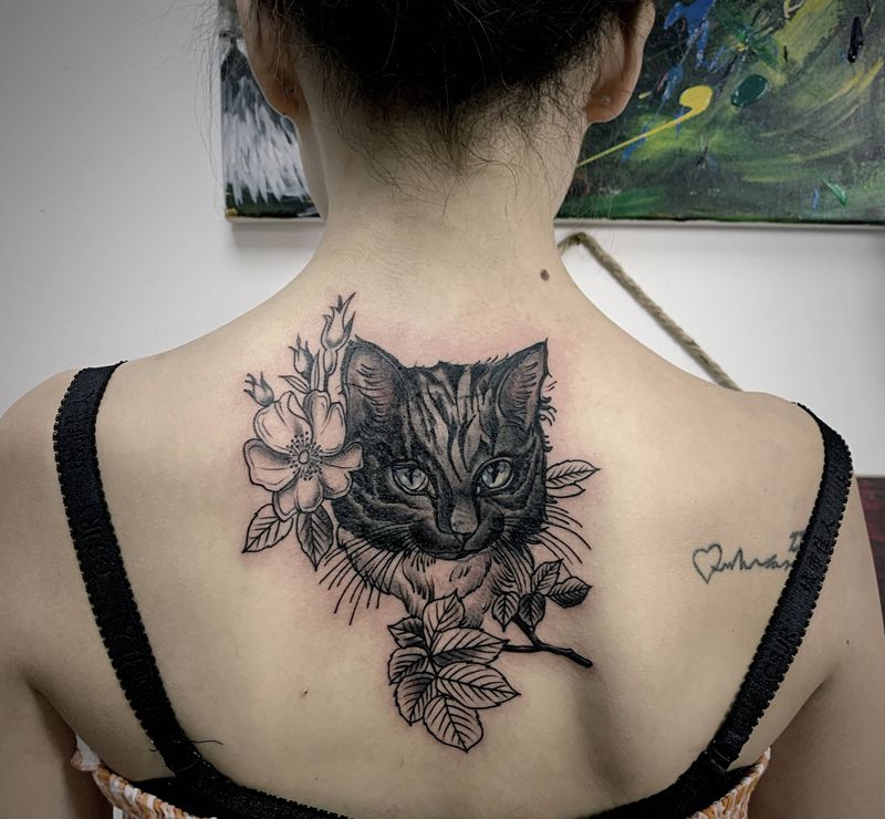 当前位置: 首页 >广东省广州市纹身店-框刺青纹身图案>遮盖旧纹身 未完成纹身图片_背部New School纹身图案