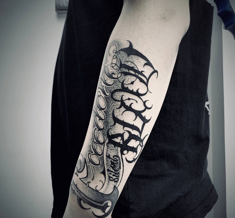 当前位置: 首页 >广东省广州市纹身店-框刺青纹身图案>花体字纹身图片_手臂花体字纹身图案
