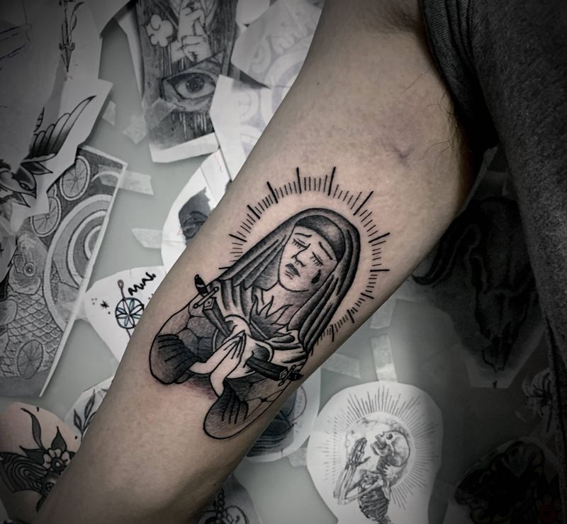 school 圣女 第二次纹身图片_手臂Old School纹身图案