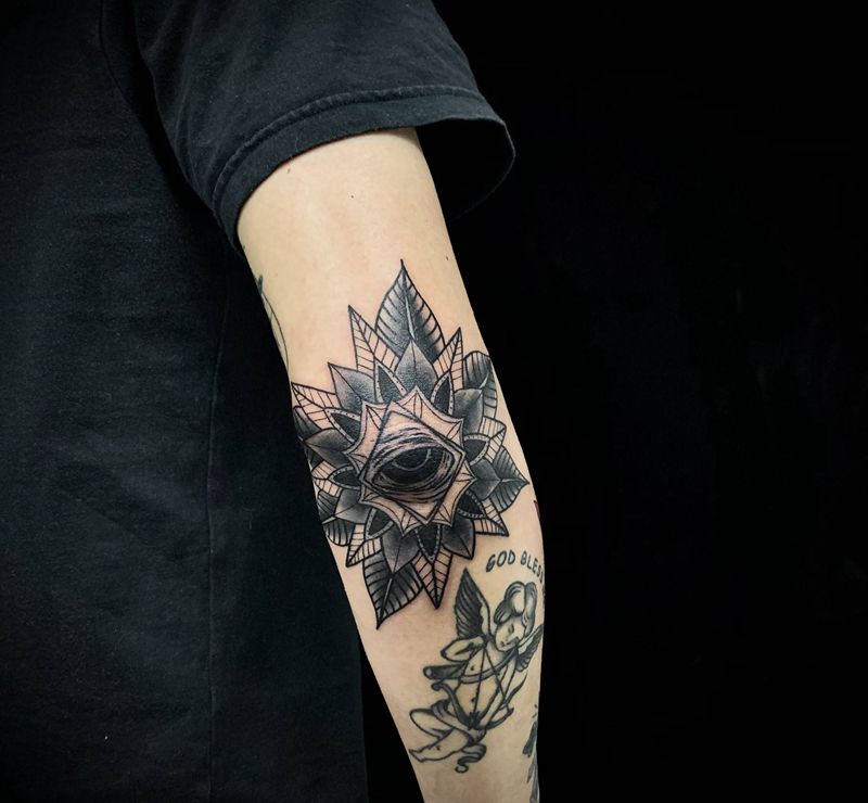 手肘位置纹身图片_手臂Old School几何纹身图案