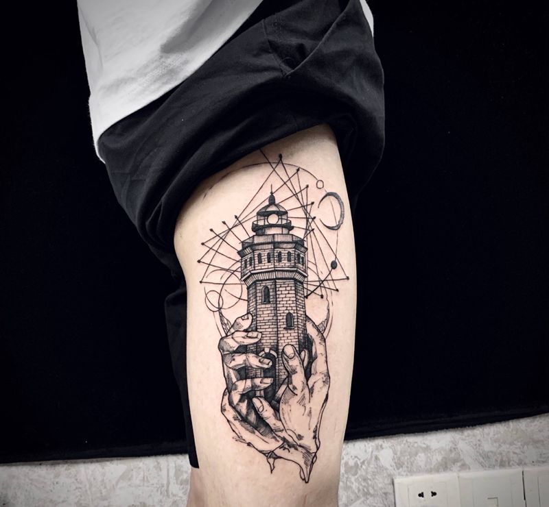 当前位置: 首页 >广东省广州市纹身店-框刺青纹身图案>灯塔纹身图片_腿部点刺几何纹身图案